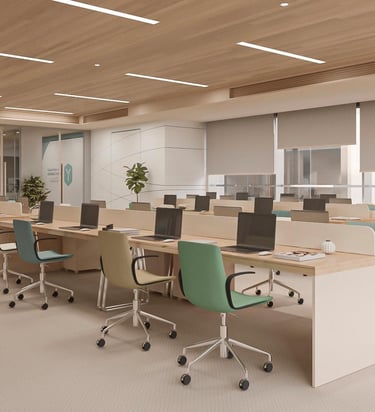 سواء كانت مقرات رئيسية، مراكز ابتكار، أو استوديوهات تعاونية، نحرص على أن تعكس كل مساحة قيم المؤسسة، وتدعم الإنتاجية والرفاهية والمرونة.
